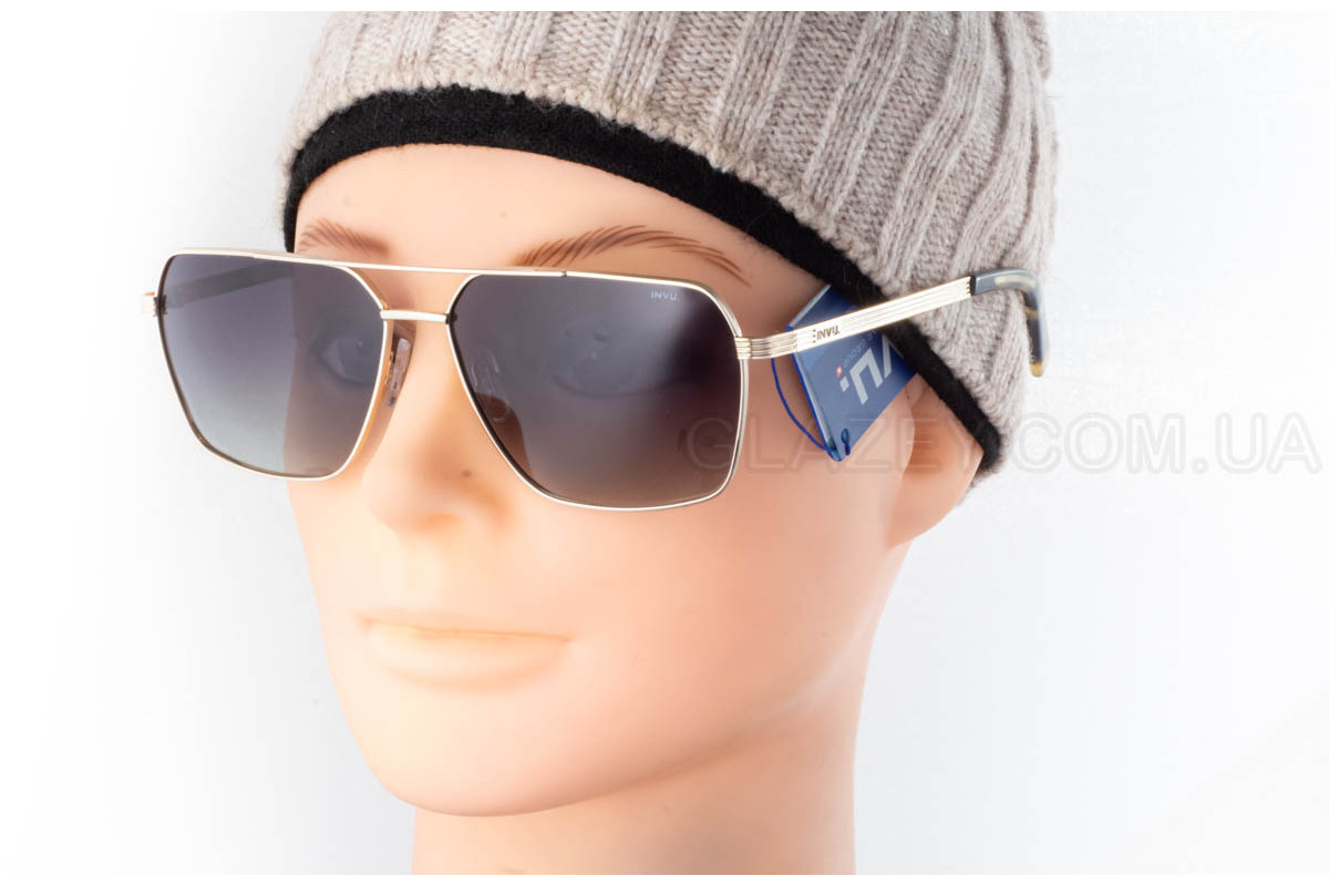 Сонцезахисні окуляри INVU IB12614B у золотистій оправі