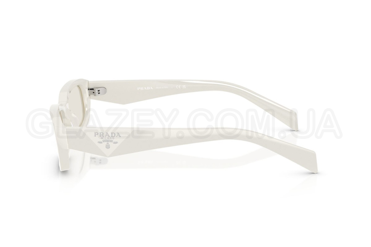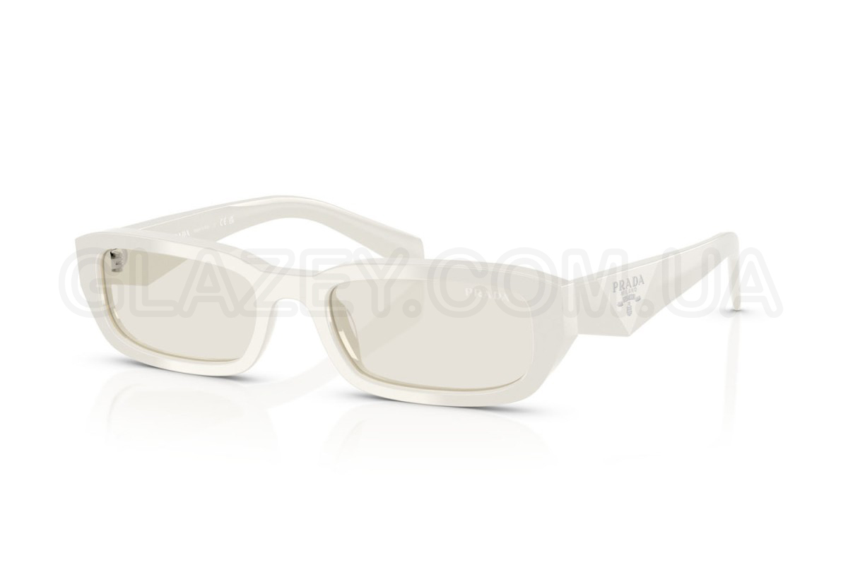 - Особливості оправи: Вузький та виразний силует. Ацетатні дужки з гранованою фактурою повторюють легендарний трикутник і несуть у собі логотип Prada