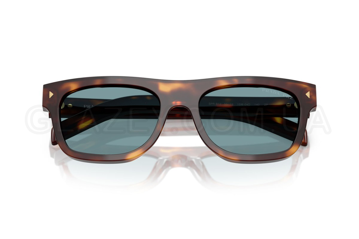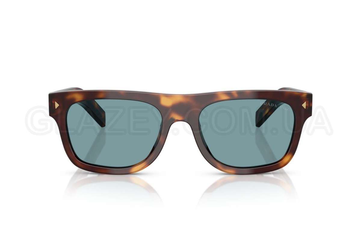 - Особливості оправи: Насичений ацетат гармонійно поєднується з яскравим відтінком лінз. Масивні дужки з видовженими металевими пластинами гордо несуть логотип Prada, а передня частина оздоблена делікатними металевими трикутниками