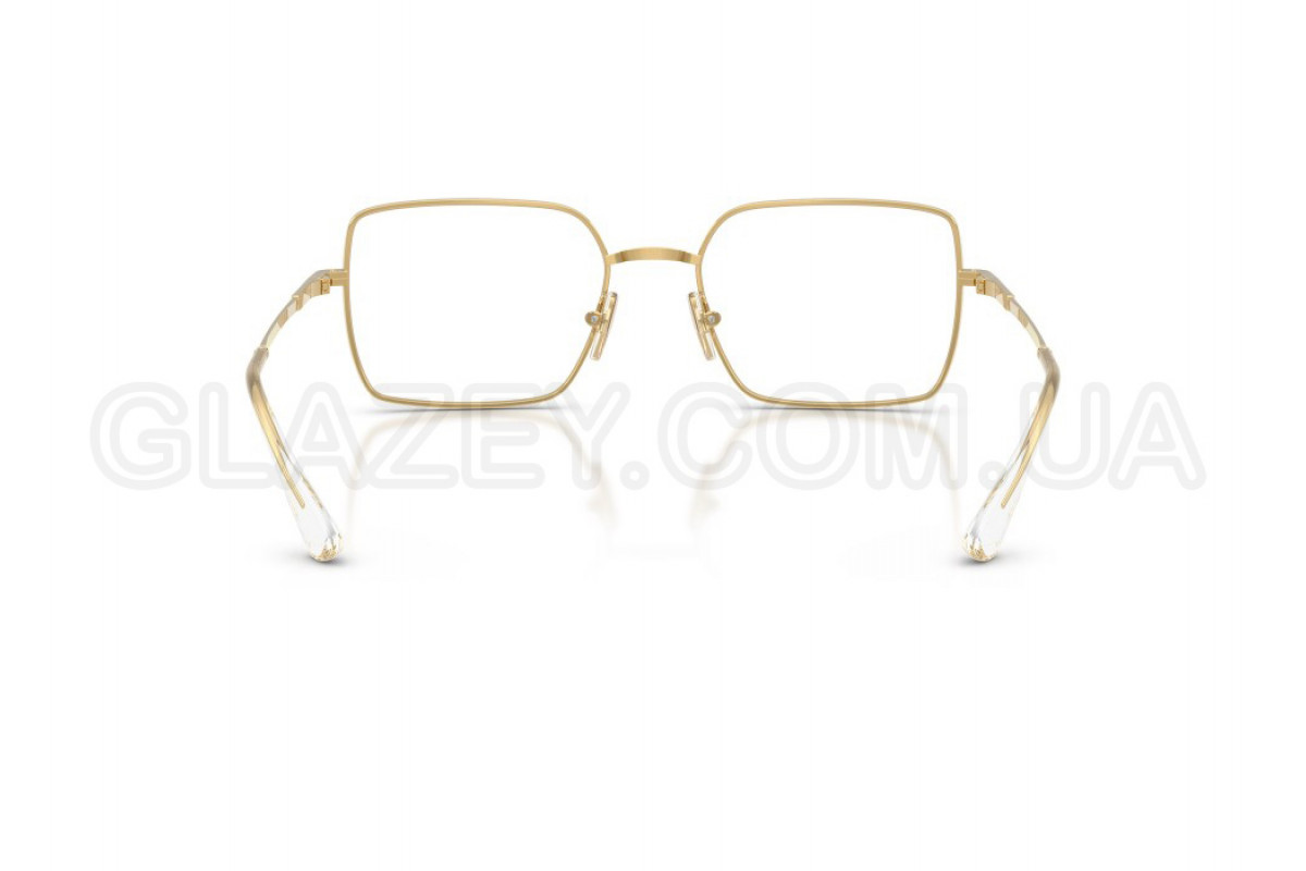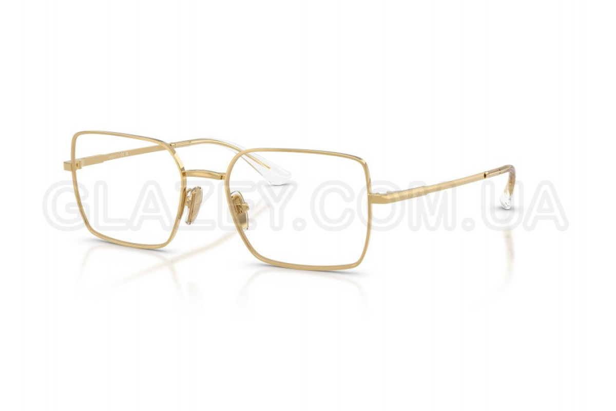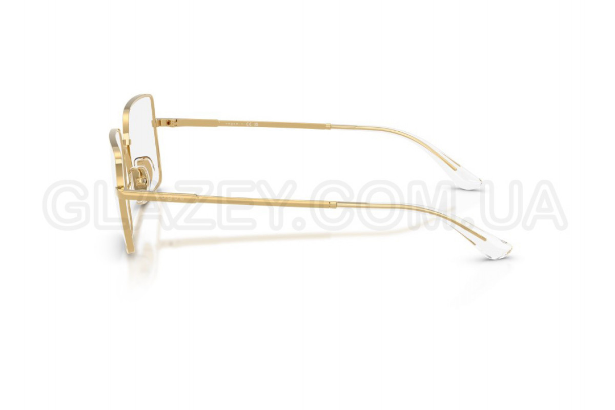 - Особливості оправи: Повноободковий тип. Мінімалістичний дизайн із модним акцентом. Квадратна металева оправа доповнена тонкими завушниками із прозорими наконечниками. Логотип Vogue Eyewear розміщений на завушниках та регульованих носових упорах, підкреслюючи фірмовий стиль