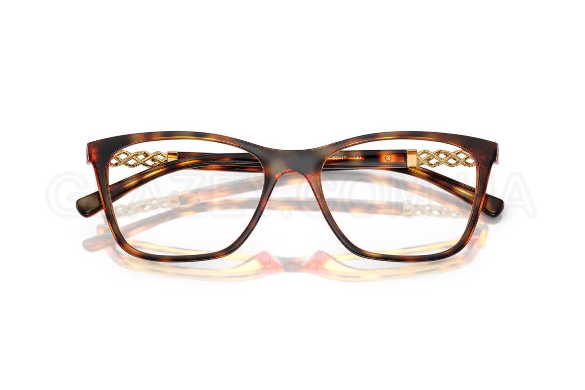 - Особливості оправи: Повноободковий тип. Окуляри створені для тих, хто любить зручність, але не хоче нудьги. Сувора прямокутна форма доповнена плетеними металевими дужками, які роблять дизайн цікавішим. Кристали з боків додають легкий блиск. Палітра включає класичні та прозорі кольори, а фірмовий логотип на дужках завершує стиль
