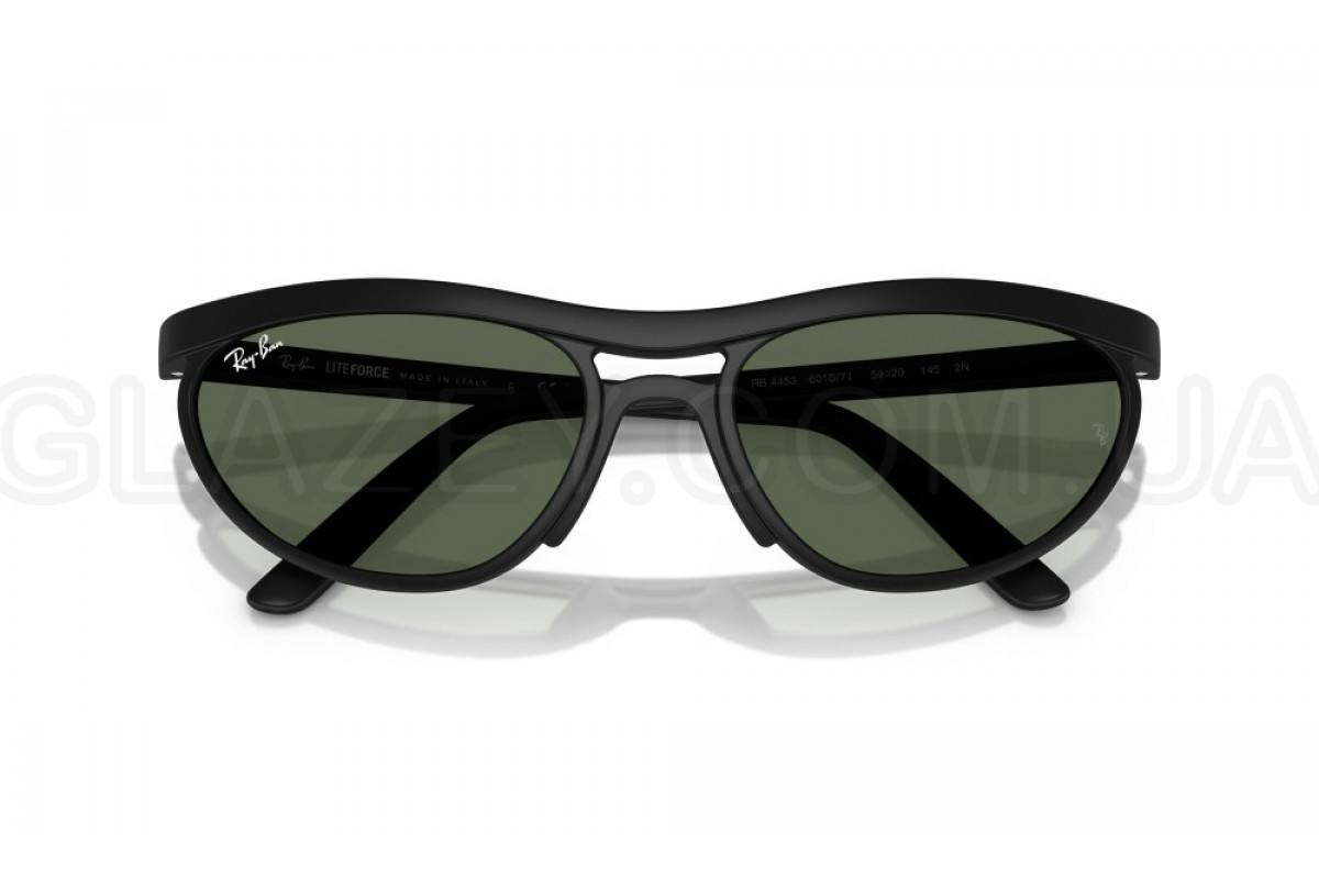 - Особенности оправы: Очки созданы по образу легендарной модели Predator, но с использованием новых технологий. Благодаря материалу Liteforce они очень лёгкие и устойчивые к повреждениям. Немного изогнутая форма, матовые оттенки и логотип Ray-Ban делают эту модель стильной и удобной для повседневного использования