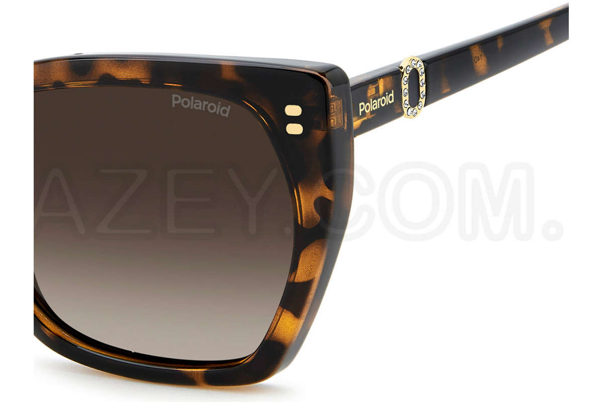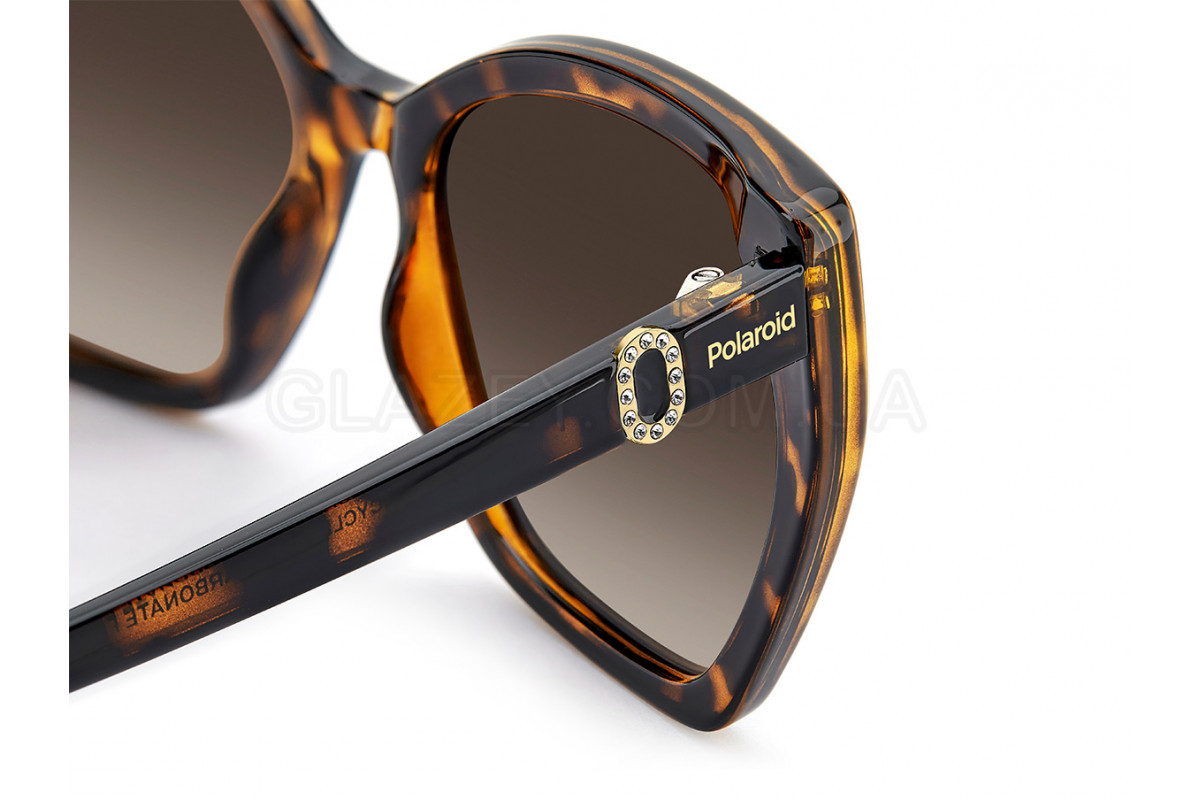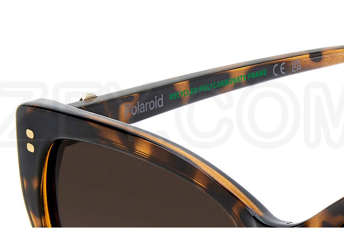 - Особенности оправы: Коллекция ESSENTIAL BLING BLING. Эта модель — постоянный хит коллекции Polaroid Eyewear. Она сочетает в себе утончённый стиль и неизменную актуальность благодаря культовой конструкции с металлическим декором и элегантными стразами, которые получили новое прочтение в этой коллекции. Внутри заушников зеленая надпись RECYCLED POLYCARBONATE FRAME. Возможность вставки корригирующих линз